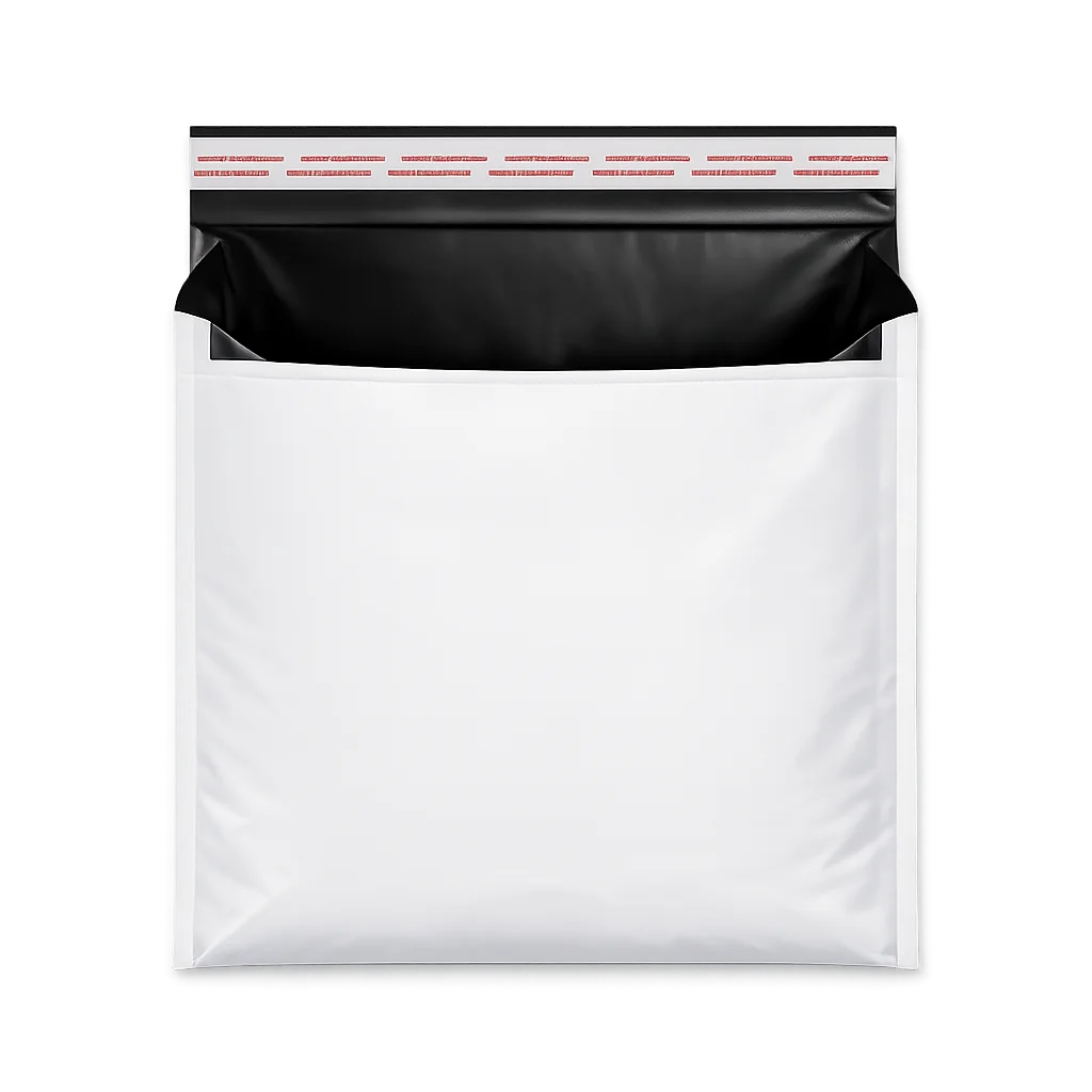Grösse: 400x500mm+50mm Verschlussklappe 65µ Material: Strapazierfähige LDPE-Folie (Coex) Farbe: Außen edles Weiß, innen blickdichtes Schwarz Verschluss: 50 mm Klappe mit extra starkem, permanent haftendem Klebestreifen Materialstärke: Erhältlich in 65µ extra stark Verpackungseinheit: 1000 Stück im handlichen Karton (Gewicht ca. 25,12kg